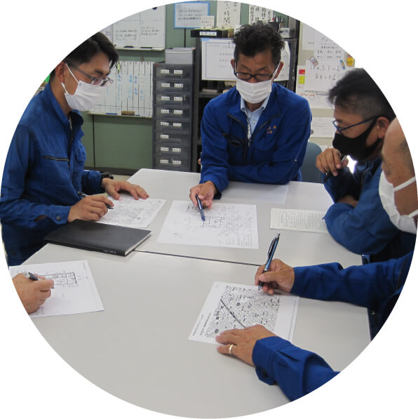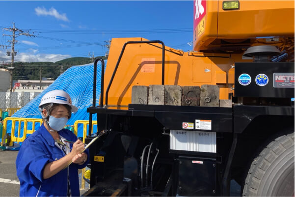 現地に出向き、状況を確認。クレーンの選定、進入経路や鉄板枕木養生の有無等を段取りします。
